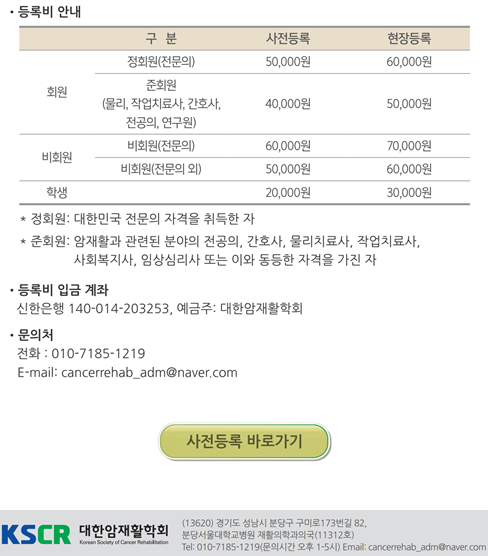 [대한암재활학회] 제11회 정기학술대회 (등록연장~3/12) 안내