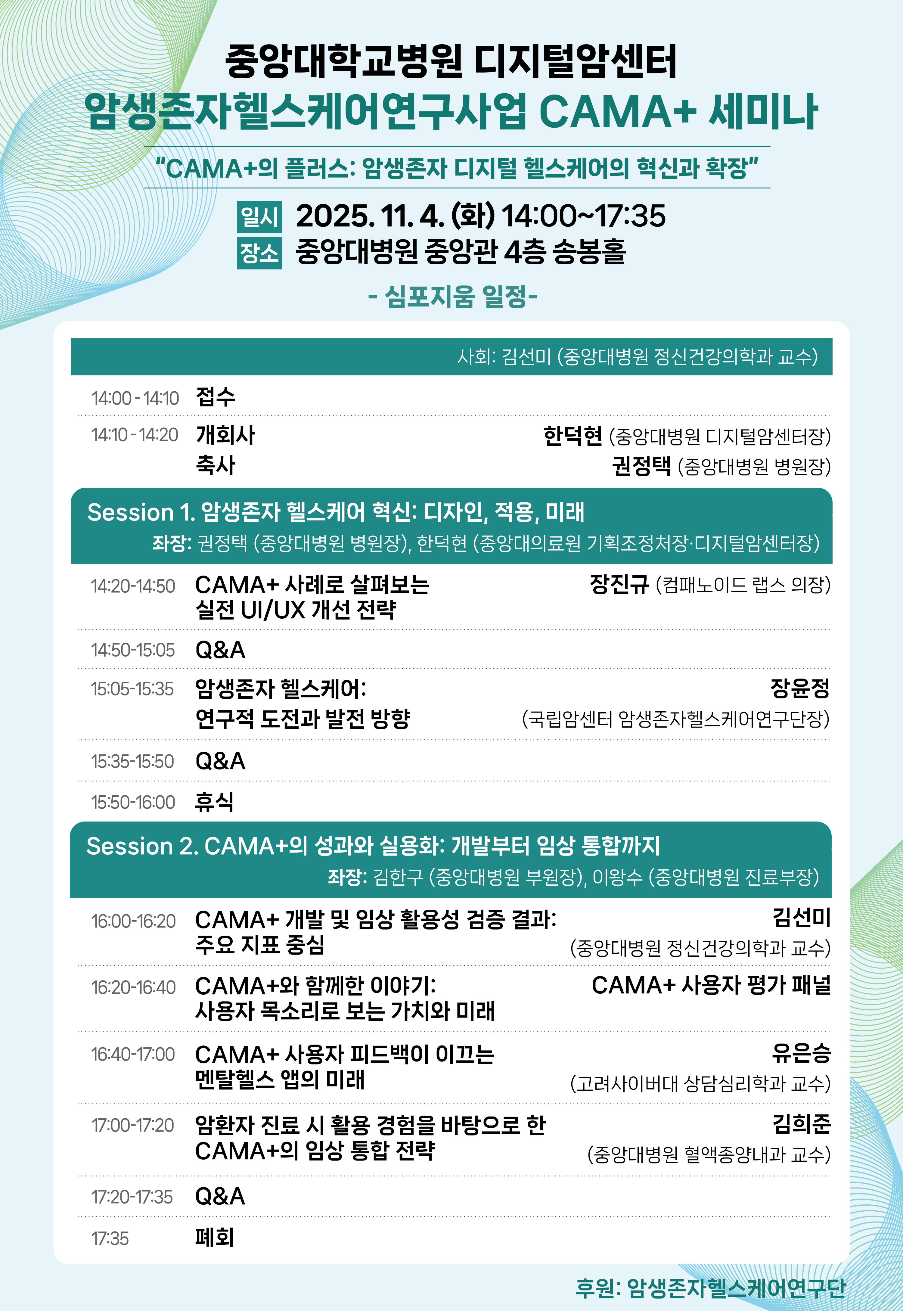 중앙대학교병원 디지털암센터 심포지움 개최 안내