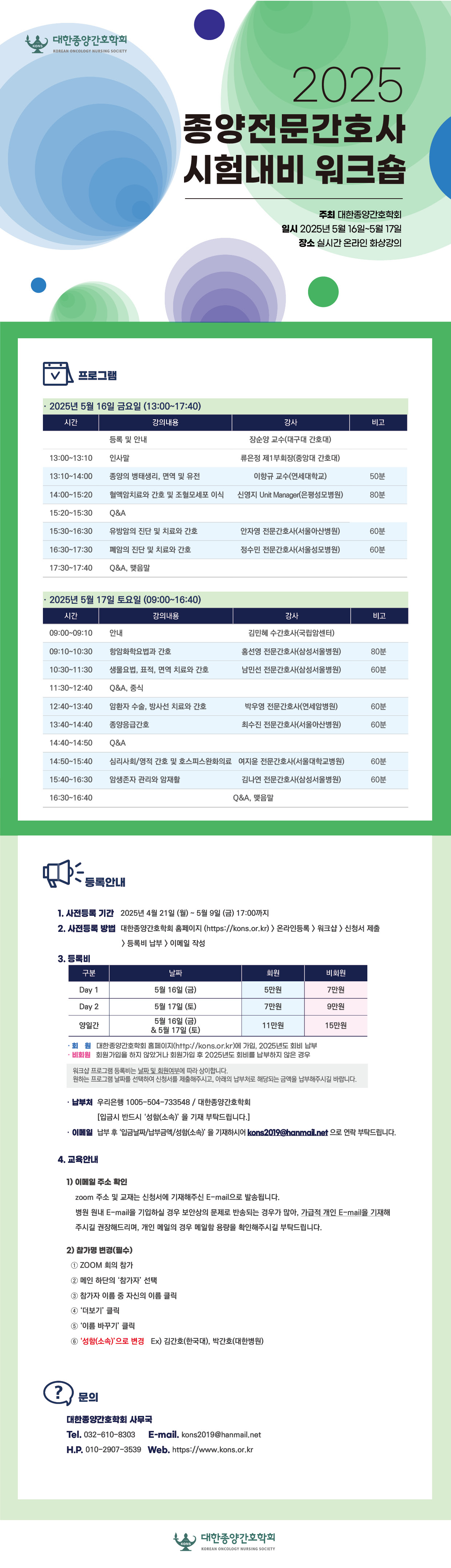 2025 종양전문간호사 시험대비 워크숍 개최 및 등록안내