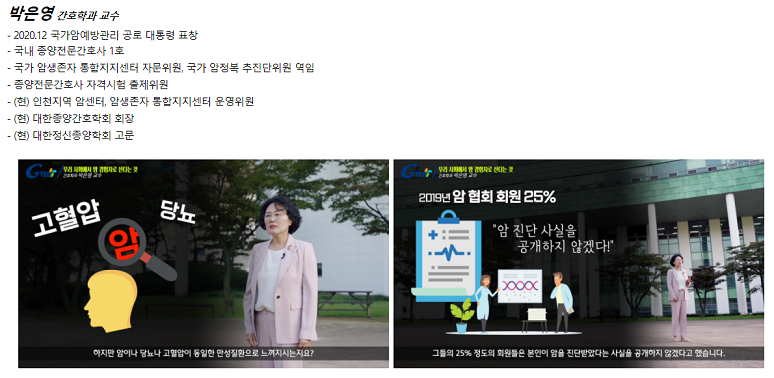 現 대한종양간호학회 회장, 인천지역 암센터 · 암생존자 통합지지센터 운영위원인 가천대학교 박은영교수가