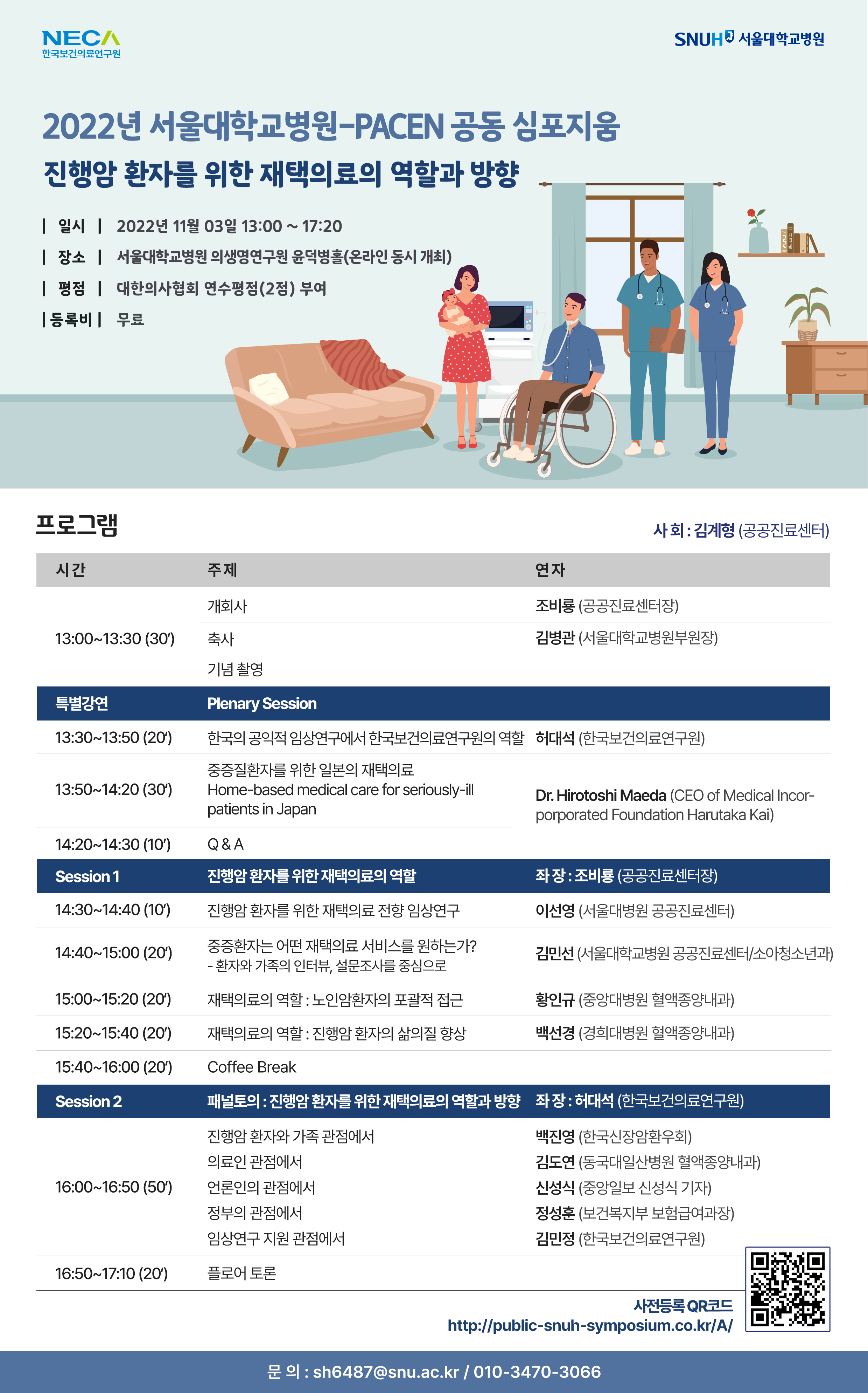 [타기관] 서울대학교병원-PACEN 공동 심포지움 '진행암 환자를 위한 재택의료의 역할과 방향'