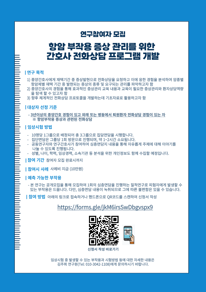 항암부작용 증상관리를 위한 간호사 전화상담 프로그램 개발 FGI 대상자 모집