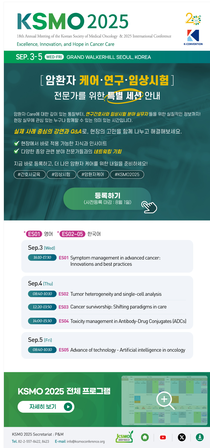 [대한종양내과학회] 국제학술대회 (KSMO 2025) 간호사 및 연구원 등 실무자를 위한 Education Session 안내