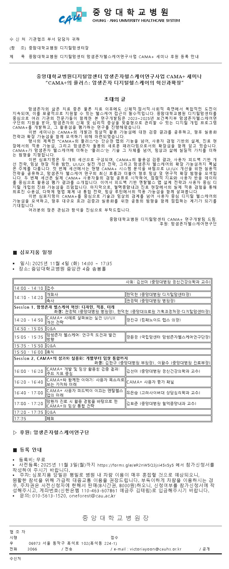 중앙대학교병원 디지털암센터 심포지움 개최 안내