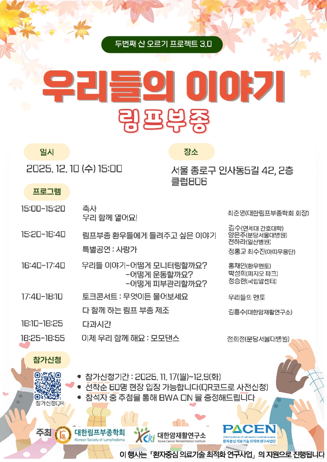 12월 10일, 림프부종 가이드라인을 개발하기 위해 환우들의 목소리를 청취할 수 있는 자리를 마련하고자